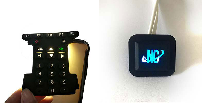 大家都知道要想達到透光效果,按鍵下面的PCB板上一定是要有LED燈,要想達到彩色透光有兩種方案,一種就是改變LED燈的顏色,另一種就是在硅膠按鍵多加一道工藝,效果圖如下,正常硅膠按鍵透光的工藝是成型-噴涂-鐳雕。而彩色透光則是在噴涂之前加了一道絲印的工藝。